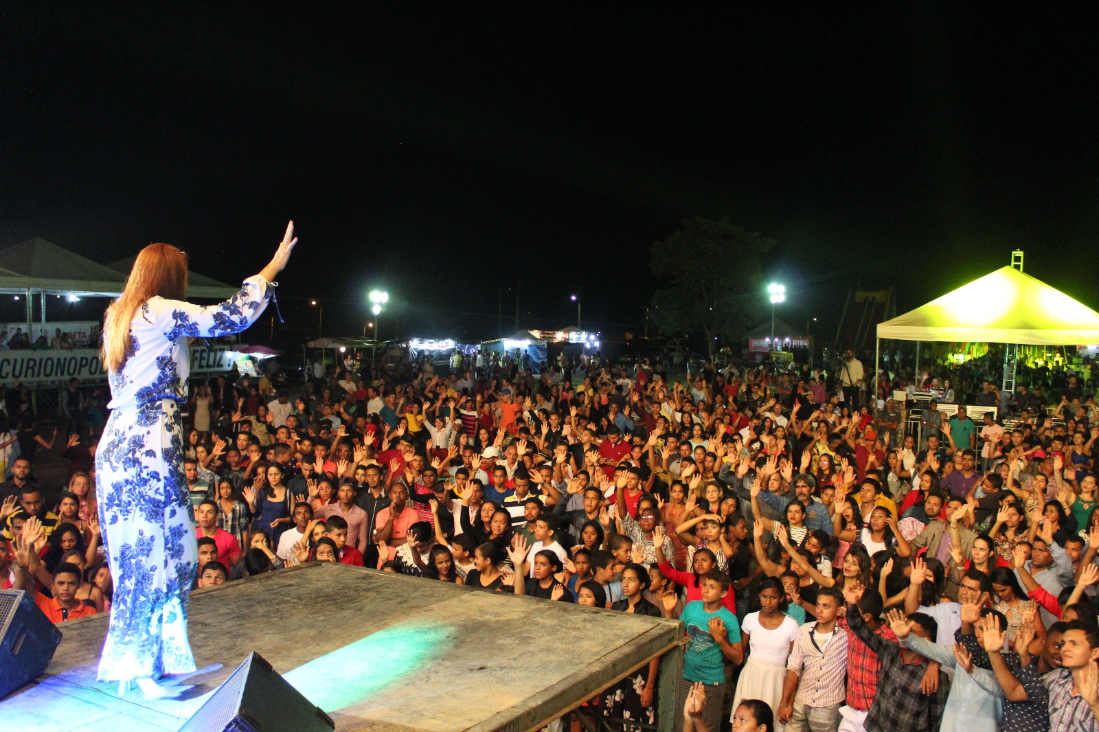 Em seguida coube a ele, Adonei, anunciar a grande atração da noite, a cantora gospel Flordelis, artista de nível nacional, que se apresentou de forma contagiante e firme em suas palavras exaltou a presença de muitos jovens e pediu que não se desvirtuassem dos caminhos de Deus. Dizendo-se uma adoradora de Deus, profetizou que naquele lugar onde acontecia o show Deus estava operando milagres e via a presença Dele pairando sobre muitas pessoas, crentes ou não.