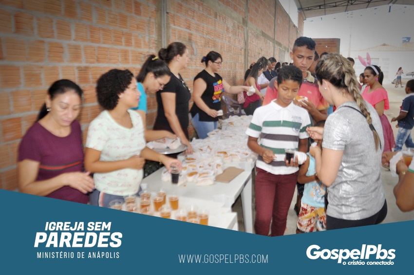 O Projeto Igreja Sem Paredes da Igreja Assembleia de Deus Ministério de Anápolis realizou uma ação de Páscoa com crianças nos bairros dos Minérios, VS10 e São Lucas. O objetivo era levar o amor de Jesus e alegria. Na ocasião foi apresentado um teatro falando sobre o que Jesus pode fazer no coraçãozinho das crianças. No final da ação foram entregues ovos de Páscoa.